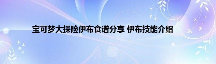 宝可梦大探险游戏里面有很多宝可梦给玩家们来进行培养,其中伊布就是一个非常热门的宝可梦了,得到了很多玩家的喜欢。不过不少玩家对于伊布的食谱以及它的技能还不是特殊的了解,那下面就让小编给玩家们带来这篇伊布食谱以及伊布技能的介绍分享,希翼能够帮助到大家们。