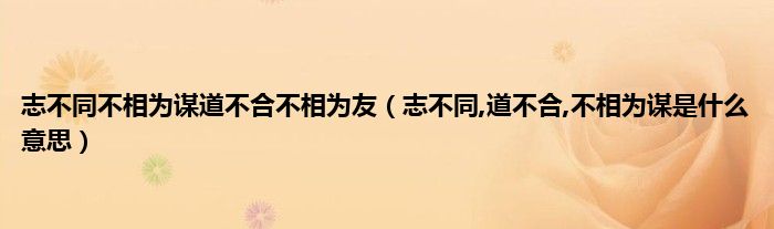 大家好,小科来为大家解答以上问题。志不同不相为谋道不合不相为友,志不同,道不合,不相为谋是什么意思很多人还不知道,现在让我们一起来看看吧!