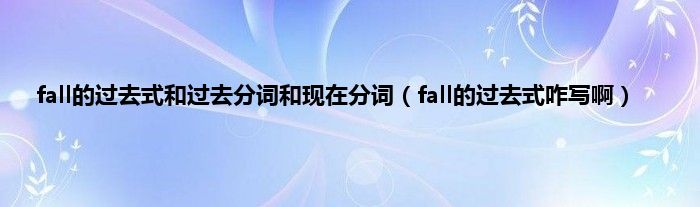 大家好,小科来为大家解答以上问题。fall的过去式和过去分词和现在分词,fall的过去式咋写啊很多人还不知道,现在让我们一起来看看吧!