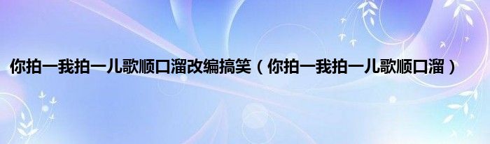 大家好,小科来为大家解答以上问题。你拍一我拍一儿歌顺口溜改编搞笑,你拍一我拍一儿歌顺口溜很多人还不知道,现在让我们一起来看看吧!