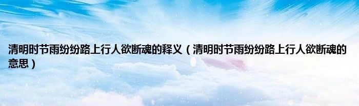 大家好,小科来为大家解答以上问题。清明时节雨纷纷路上行人欲断魂的释义,清明时节雨纷纷路上行人欲断魂的意思很多人还不知道,现在让我们一起来看看吧!