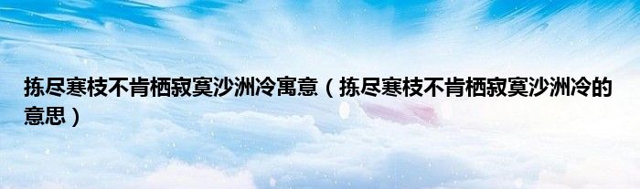 大家好,小科来为大家解答以上问题。拣尽寒枝不肯栖寂寞沙洲冷寓意,拣尽寒枝不肯栖寂寞沙洲冷的意思很多人还不知道,现在让我们一起来看看吧!