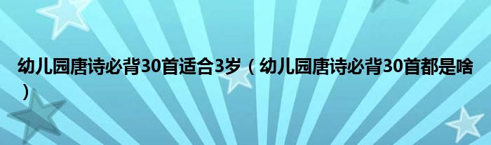 大家好,小科来为大家解答以上问题。幼儿园唐诗必背30首适合3岁,幼儿园唐诗必背30首都是啥很多人还不知道,现在让我们一起来看看吧!