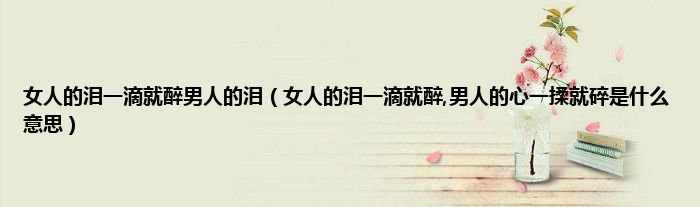 1、 男人的心一揉就碎是什么意思女人的泪一滴就醉.回答:女人的眼泪让人心酸,男人看到眼泪心更软。