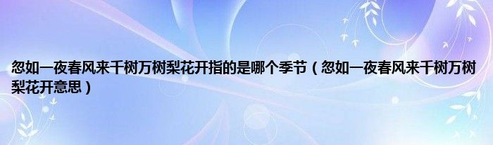 大家好,小科来为大家解答以上问题。忽如一夜春风来千树万树梨花开指的是哪个季节,忽如一夜春风来千树万树梨花开意思很多人还不知道,现在让我们一起来看看吧!