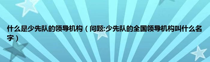 大家好,小科来为大家解答以上问题。什么是少先队的领导机构,问题:少先队的全国领导机构叫什么名字很多人还不知道,现在让我们一起来看看吧!