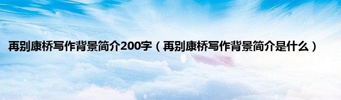 大家好,小科来为大家解答以上问题。再别康桥写作背景简介200字,再别康桥写作背景简介是什么很多人还不知道,现在让我们一起来看看吧!