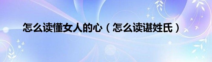 大家好,小科来为大家解答以上问题。怎么读懂女人的心,怎么读谌姓氏很多人还不知道,现在让我们一起来看看吧!