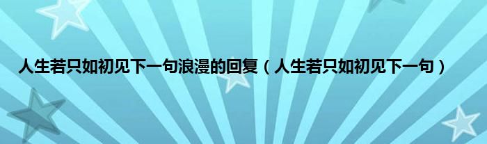 大家好,小科来为大家解答以上问题。人生若只如初见下一句浪漫的回复,人生若只如初见下一句很多人还不知道,现在让我们一起来看看吧!