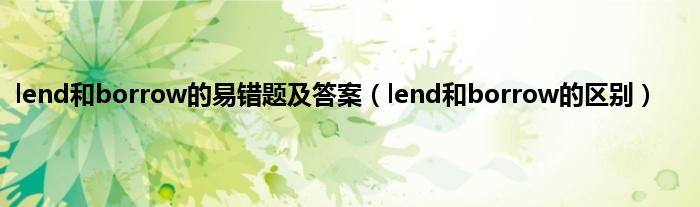 大家好,小科来为大家解答以上问题。lend和borrow的易错题及答案,lend和borrow的区别很多人还不知道,现在让我们一起来看看吧!