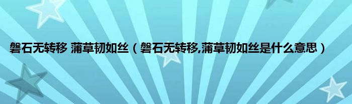 大家好,小科来为大家解答以上问题。磐石无转移 蒲草韧如丝,磐石无转移,蒲草韧如丝是什么意思很多人还不知道,现在让我们一起来看看吧!