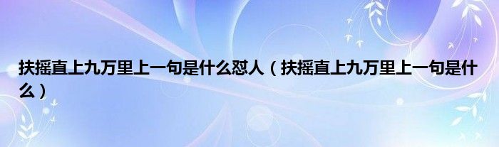 大家好,小科来为大家解答以上问题。扶摇直上九万里上一句是什么怼人,扶摇直上九万里上一句是什么很多人还不知道,现在让我们一起来看看吧!