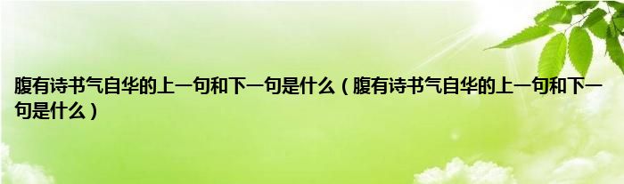 大家好,小科来为大家解答以上问题。腹有诗书气自华的上一句和下一句是什么,腹有诗书气自华的上一句和下一句是什么很多人还不知道,现在让我们一起来看看吧!