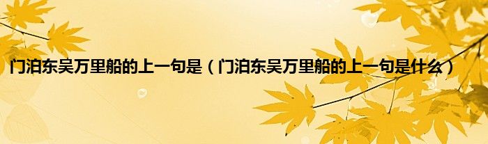 大家好,小科来为大家解答以上问题。门泊东吴万里船的上一句是,门泊东吴万里船的上一句是什么很多人还不知道,现在让我们一起来看看吧!