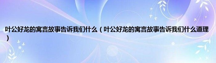 1、 “叶公龙浩”告诉我们一个真理:为人诚实、正直、实事求是。不要盲目的追求和崇拜某样东西,喜欢某样东西。你不仅要看它的表面现象,更要深刻理解它的内在本质。