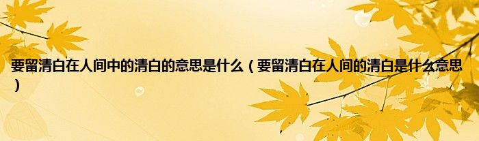 大家好,小科来为大家解答以上问题。要留清白在人间中的清白的意思是什么,要留清白在人间的清白是什么意思很多人还不知道,现在让我们一起来看看吧!