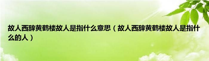 大家好,小科来为大家解答以上问题。故人西辞黄鹤楼故人是指什么意思,故人西辞黄鹤楼故人是指什么的人很多人还不知道,现在让我们一起来看看吧!