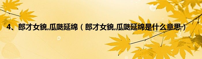 大家好,小科来为大家解答以上问题。4、郎才女貌,瓜瓞延绵,郎才女貌,瓜瓞延绵是什么意思很多人还不知道,现在让我们一起来看看吧!
