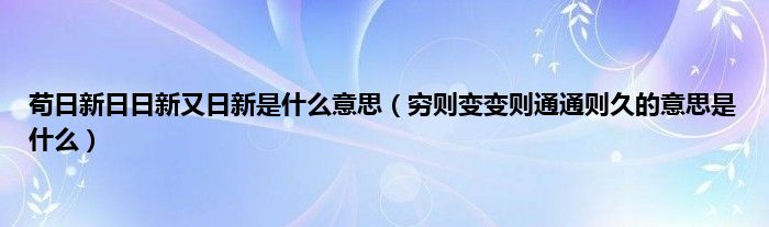 大家好,小科来为大家解答以上问题。苟日新日日新又日新是什么意思,穷则变变则通通则久的意思是什么很多人还不知道,现在让我们一起来看看吧!