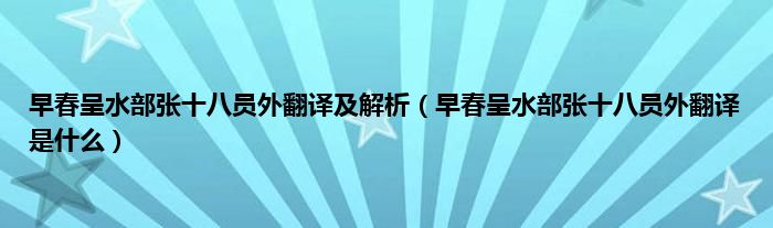 1、 《早春呈水部张十八员外》一般指《早春呈水部张十八员外二首》。