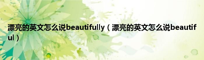 大家好,小科来为大家解答以上问题。漂亮的英文怎么说beautifully,漂亮的英文怎么说beautiful很多人还不知道,现在让我们一起来看看吧!