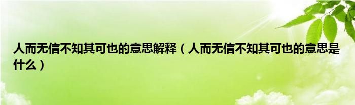 大家好,小科来为大家解答以上问题。人而无信不知其可也的意思解释,人而无信不知其可也的意思是什么很多人还不知道,现在让我们一起来看看吧!