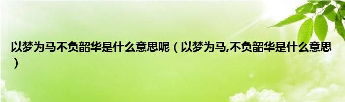 大家好,小科来为大家解答以上问题。以梦为马不负韶华是什么意思呢,以梦为马,不负韶华是什么意思很多人还不知道,现在让我们一起来看看吧!