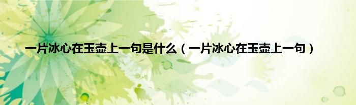 1、 一块冰在玉壶里。最后一句是:洛阳亲友互问。这首诗的意思是,如果洛阳的朋友约我来,你可以说我还是纯洁的,我忠于自己的初心。这句话出自《芙蓉楼送辛渐》唐代诗人王昌龄创作。全诗如下: