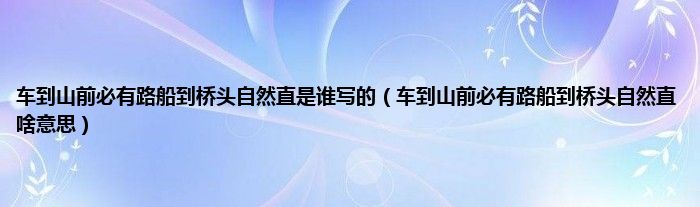 大家好,小科来为大家解答以上问题。车到山前必有路船到桥头自然直是谁写的,车到山前必有路船到桥头自然直啥意思很多人还不知道,现在让我们一起来看看吧!