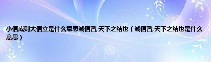 大家好,小科来为大家解答以上问题。小信成则大信立是什么意思诚信者,天下之结也,诚信者,天下之结也是什么意思很多人还不知道,现在让我们一起来看看吧!