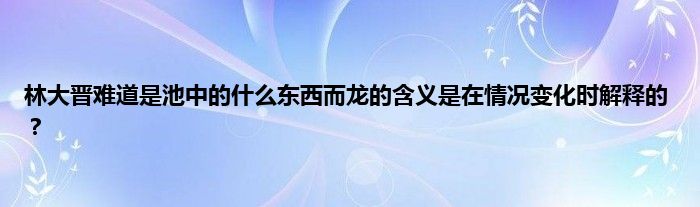 大家好,小科来为大家解答以上问题。林大晋难道是池中的什么东西而龙的含义是在情况变化时解释的?很多人还不知道,现在让我们一起来看看吧!