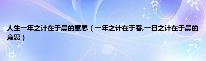 大家好,小科来为大家解答以上问题。人生一年之计在于晨的意思,一年之计在于春,一日之计在于晨的意思很多人还不知道,现在让我们一起来看看吧!