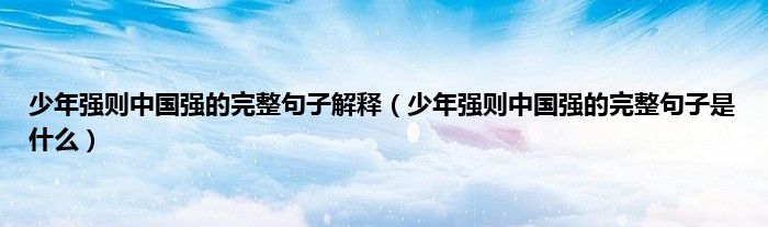 1、 完整的句子是:少年智则国强,少年富则国强,少年强则国强,少年独立则国家独立,少年自由则国家自由,少年进步则国家进步,少年优于欧洲,少年优于地球,国家优于地球。
