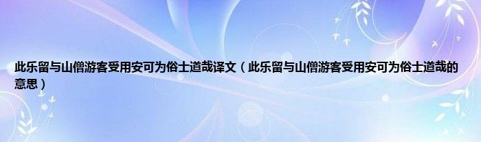 1、 此乐留与山僧游客受用安可为俗士道哉的意思:这种乐趣只有山里的和尚和见多识广的游客才能享受。