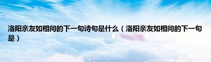 大家好,小科来为大家解答以上问题。洛阳亲友如相问的下一句诗句是什么,洛阳亲友如相问的下一句是很多人还不知道,现在让我们一起来看看吧!