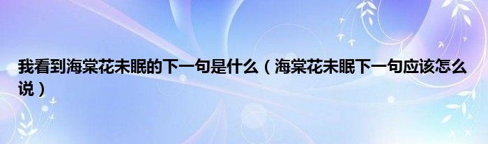 大家好,小科来为大家解答以上问题。我看到海棠花未眠的下一句是什么,海棠花未眠下一句应该怎么说很多人还不知道,现在让我们一起来看看吧!