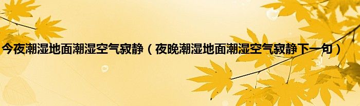 大家好,小科来为大家解答以上问题。今夜潮湿地面潮湿空气寂静,夜晚潮湿地面潮湿空气寂静下一句很多人还不知道,现在让我们一起来看看吧!