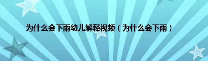 大家好,小科来为大家解答以上问题。为什么会下雨幼儿解释视频,为什么会下雨很多人还不知道,现在让我们一起来看看吧!