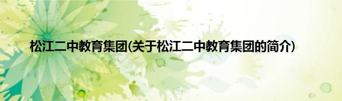 大家好,松江二中教育集团,关于松江二中教育集团的简介很多人还不知道,现在让我们一起来看看吧!