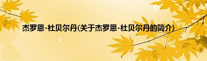 大家好,杰罗恩-杜贝尔丹,关于杰罗恩-杜贝尔丹的简介很多人还不知道,现在让我们一起来看看吧!