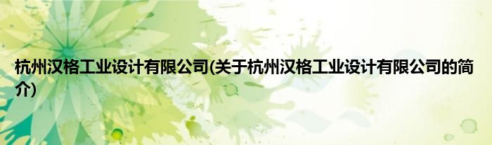本文关于杭州汉格工业设计有限公司的简介就讲解完毕,希望对大家有所帮助。