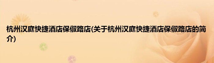 大家好,杭州汉庭快捷酒店保俶路店,关于杭州汉庭快捷酒店保俶路店的简介很多人还不知道,现在让我们一起来看看吧!