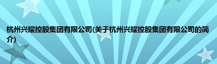 本文关于杭州兴耀控股集团有限公司的简介就讲解完毕,希望对大家有所帮助。