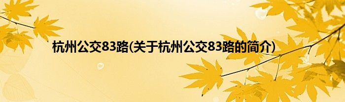 本文关于杭州公交83路的简介就讲解完毕,希望对大家有所帮助。