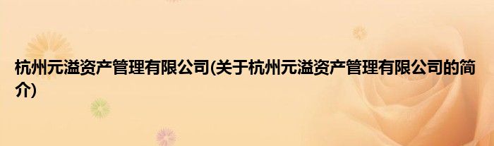 本文关于杭州元溢资产管理有限公司的简介就讲解完毕,希望对大家有所帮助。