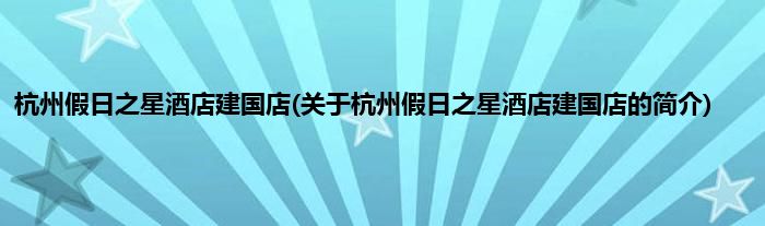 本文关于杭州假日之星酒店建国店的简介就讲解完毕,希望对大家有所帮助。