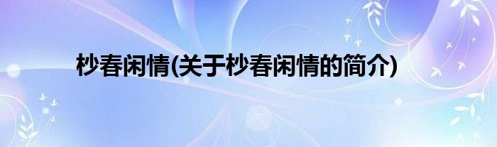 大家好,杪春闲情,关于杪春闲情的简介很多人还不知道,现在让我们一起来看看吧!