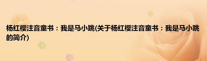 本文关于杨红樱注音童书:我是马小跳的简介就讲解完毕,希望对大家有所帮助。