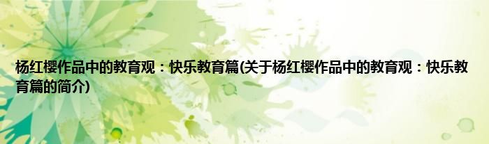 本文关于杨红樱作品中的教育观:快乐教育篇的简介就讲解完毕,希望对大家有所帮助。