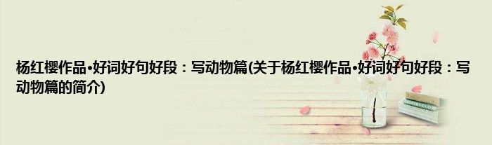 大家好,杨红樱作品·好词好句好段:写动物篇,关于杨红樱作品·好词好句好段:写动物篇的简介很多人还不知道,现在让我们一起来看看吧!